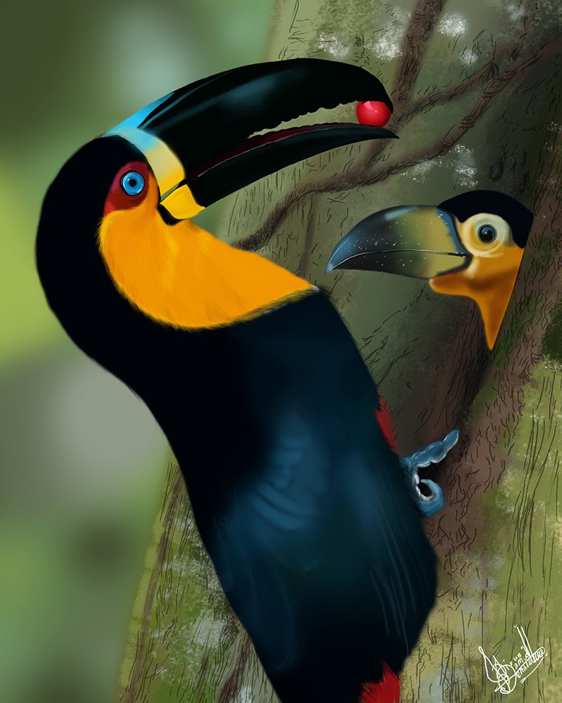 Toucans use the serrated edge of their beak to tear apart their food. Sargent james byrd the anthropomorphic penguin from game spyro the dragon is also a namesake. Toucan family ramphastidae the common name given to numerous species of tropical american forest birds known for their large and strikingly coloured billsthe term toucanderived from tucano a native brazilian term for the birdis used in the common name of about 15 species ramphastos and andigena and the aracaris and toucanets are very similar smaller birds of the same family that.