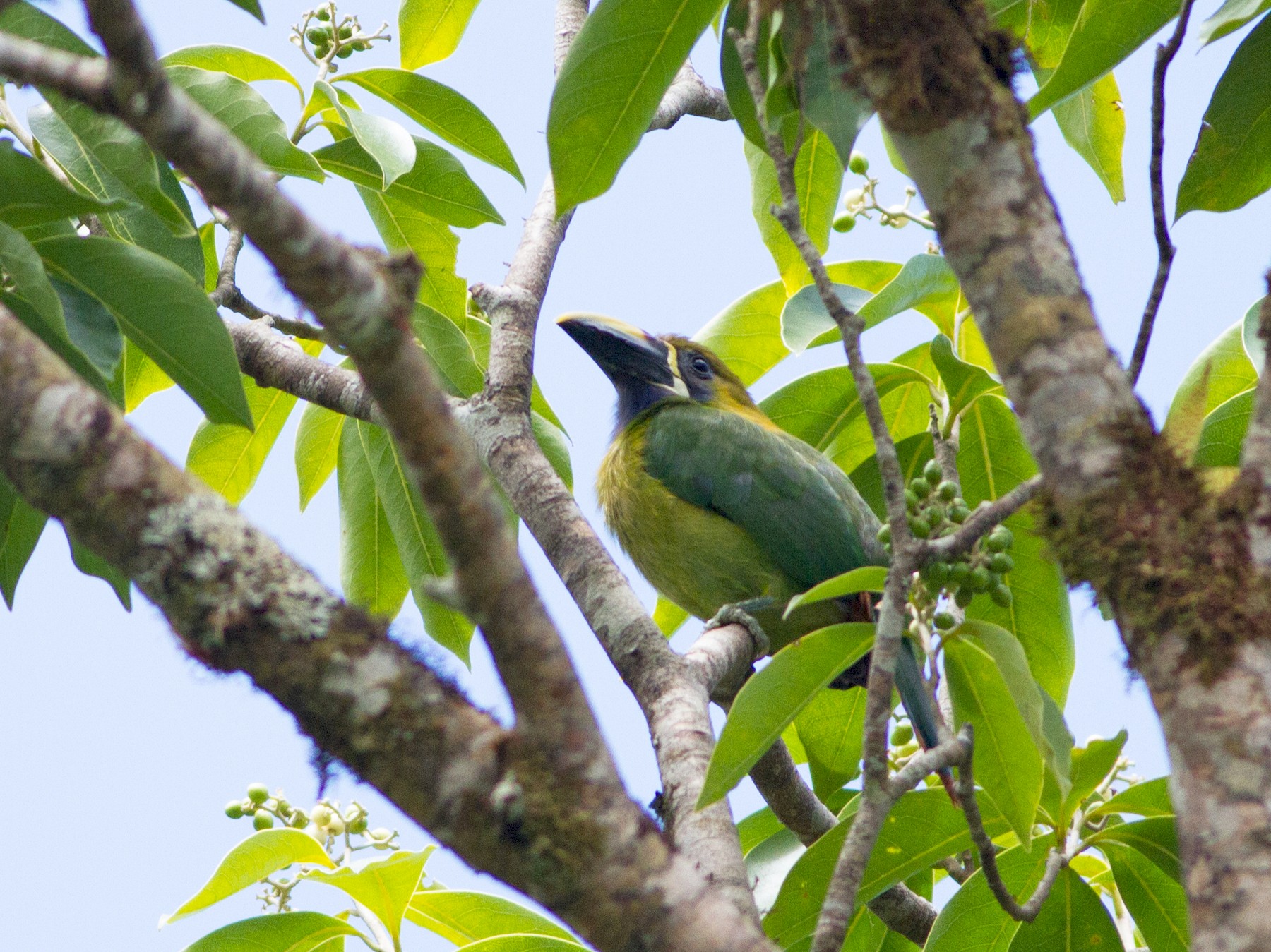 Blue throated toucanet. The blue throated toucanet aulacorhynchus caeruleogularis is a near passerine bird living in the mountain forests of costa rica and western panama. The violet throated toucanet was formerly considered as a separate species a. Blue throated toucanet aulacorhynchus caeruleogularis.