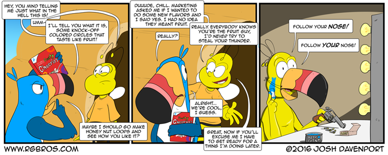 Kelloggs froot loops is packed with delicious fruity taste fruity aroma and bright colors. When peter lohmeier first joined leo burnett in 1974 the kelloggs froot loops account brightly colored mascot toucan sam and its tagline follow your nose had already been with the agency for four years. Sam extends an invitation that no one could turn down.
