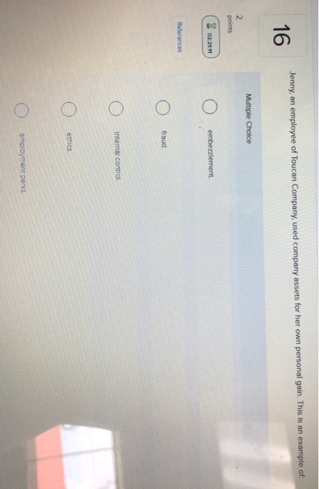 This is an example of. Jenny an employee of toucan company used company assets for her own personal gain. C 2018 2019 eog resources inc.