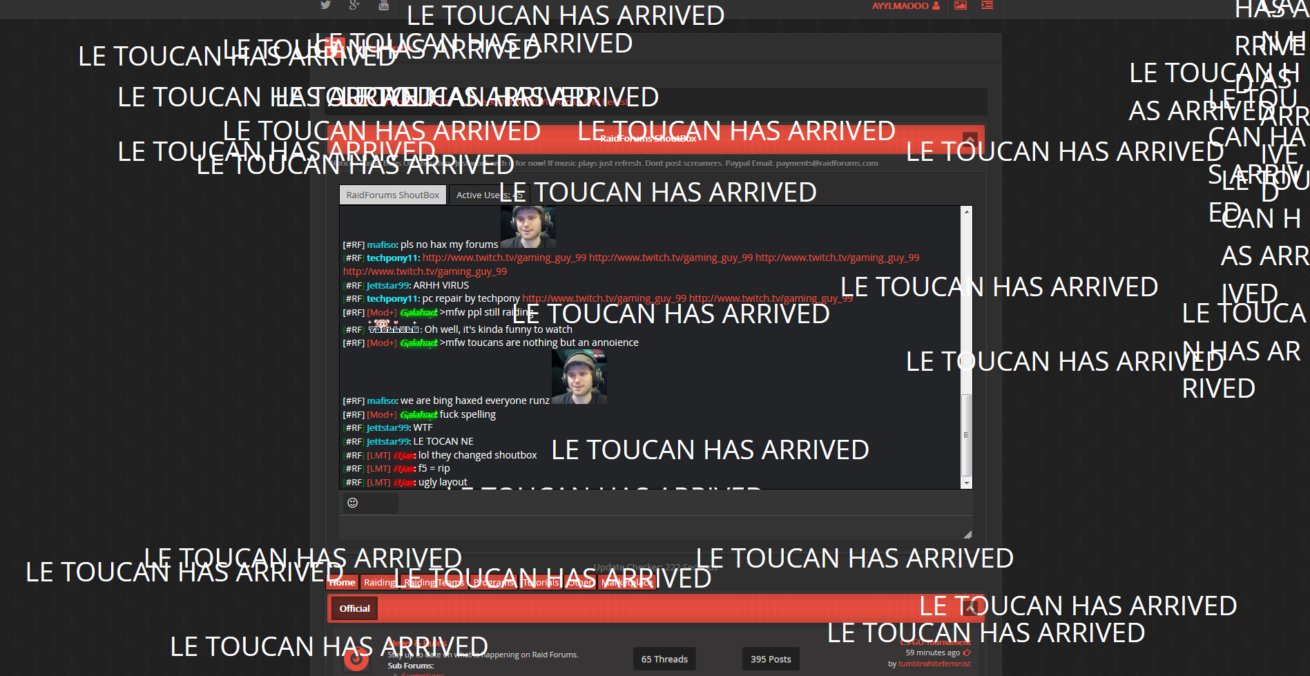 Le Toucan Team On Twitter Toucsec Ayye Our Boy Jaesercode Hacked Into Raidforums Shoutbox Http T Co 8jomiyhhe6 Toucansneverforget