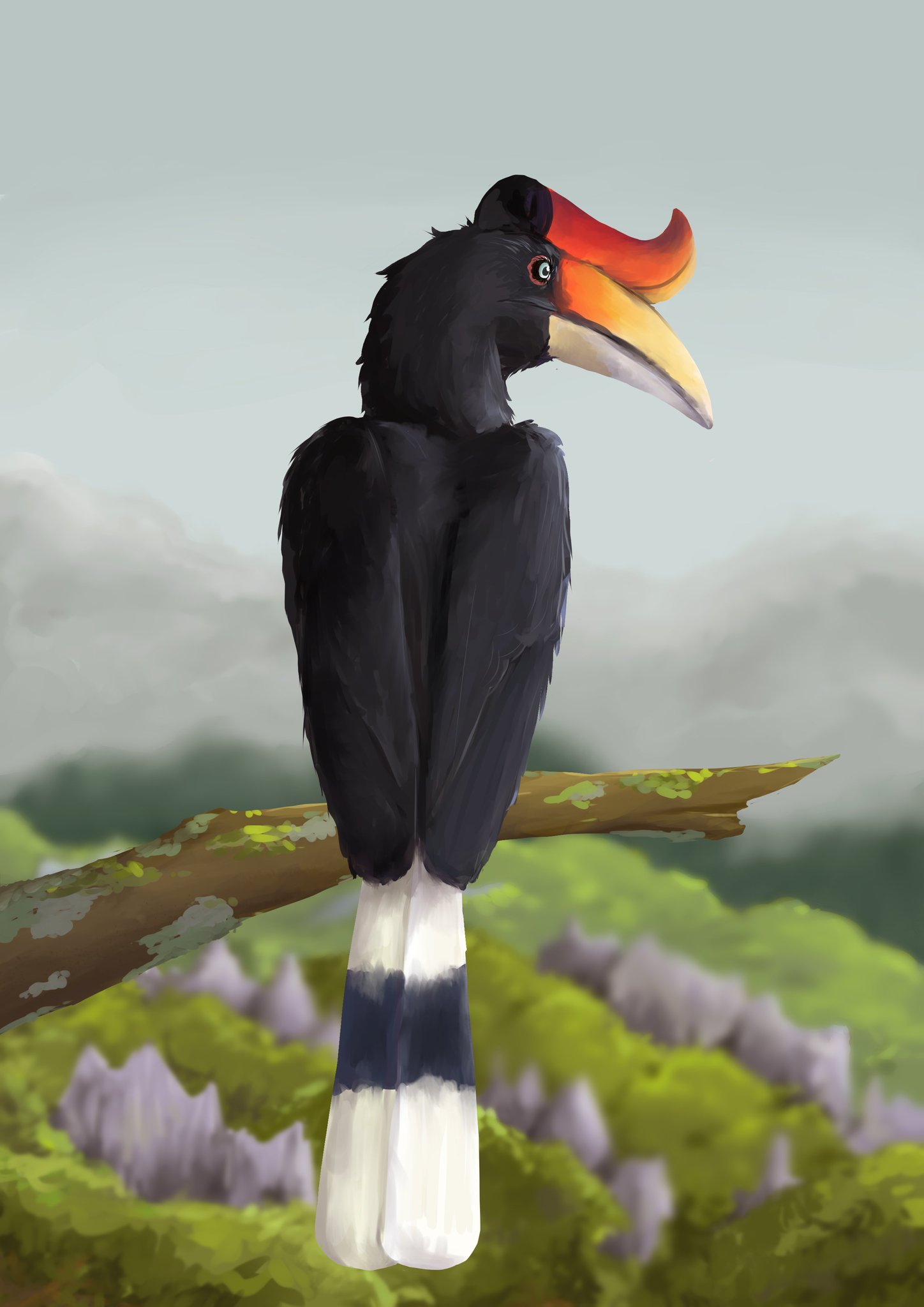 The rhinoceros hornbill is the state bird of the. The casque is a hollow structure made up of keratin the same material as human fingernails and acts as a resonating chamber amplifying the birds calls. They have black feathers on their wings and body and their tail feathers are white.