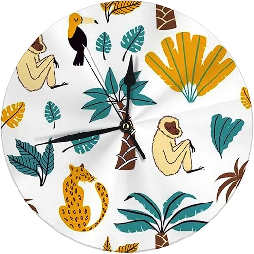 Amazon Com Yilinger Wall Clock No Ticking 9 8 Inch Leopard Monkey And Toucan In Doodle Style Vintage Wall Clock Home Kitchen