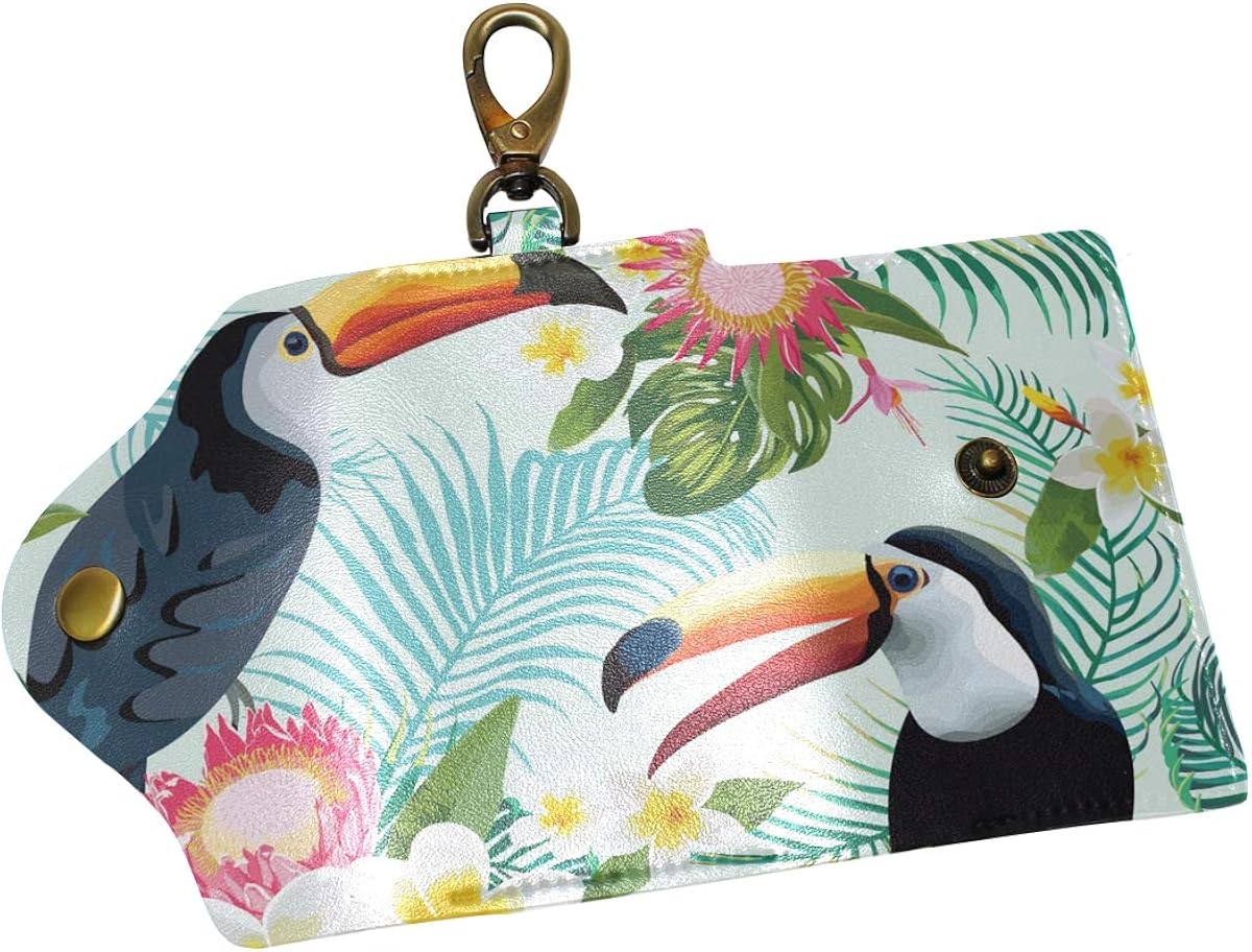 Leather Key Case Wallet Toucan Bird Palm Flower Key Pouch Bag Holder Chain For Men Women At Amazon Women S Clothing Store