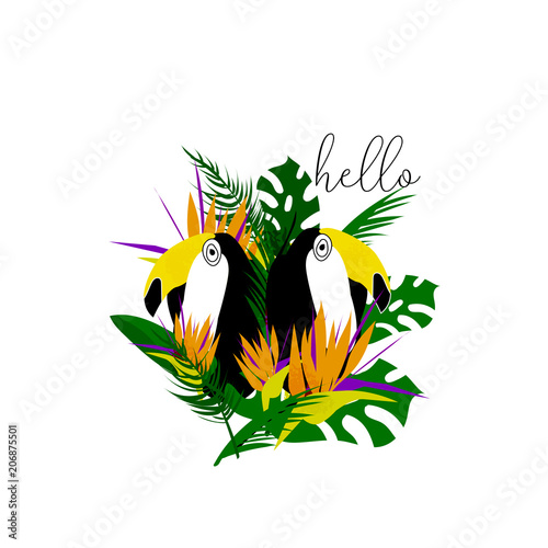 Tropical Cartoon Minimal Jungle Illustration With Toucan Bird Royalty Free Cliparts Vectors And Stock Illustration Image 102238448