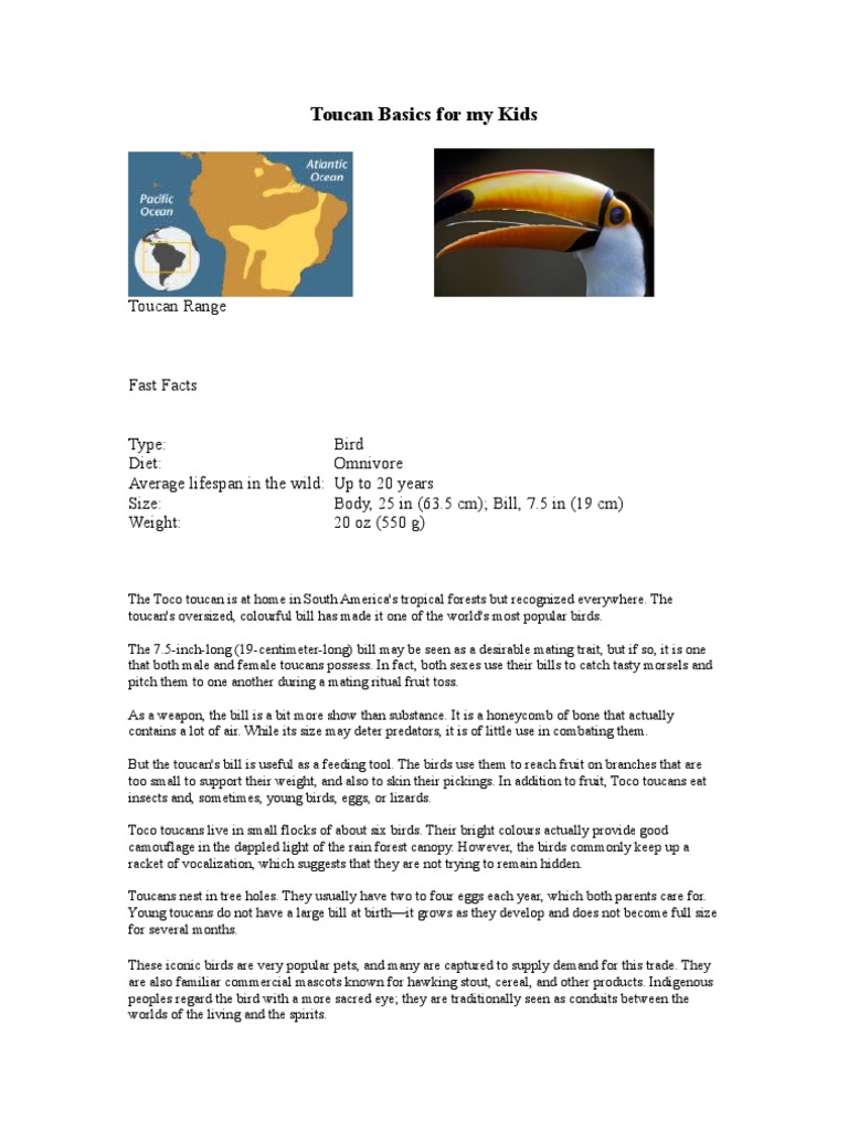 Weight up to 20 oz 550 g typical size compared to a human. Its oversized colorful bill has made it one of the worlds most popular birds. Learn about different toucan species what they eat what their bills are made off and much more.