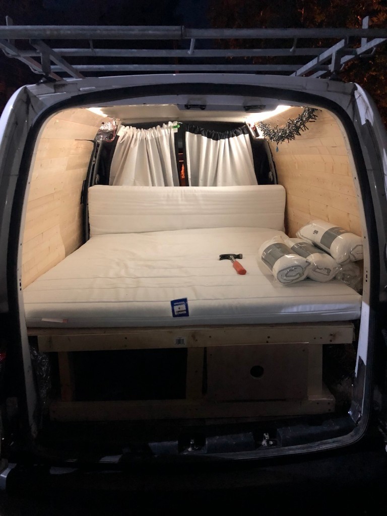 The construction is out of wood the mattress is a normal 2x14 m. Building a camper van owners forums for ford and volkswagen mpvs suvs ford galaxy s max c max b max tourneo connect volkswagen sharan touran tiguan touareg caravelle seat alhambra alteca. Heres my touran camper pretty basic i know but works well in a cheap reliable car.